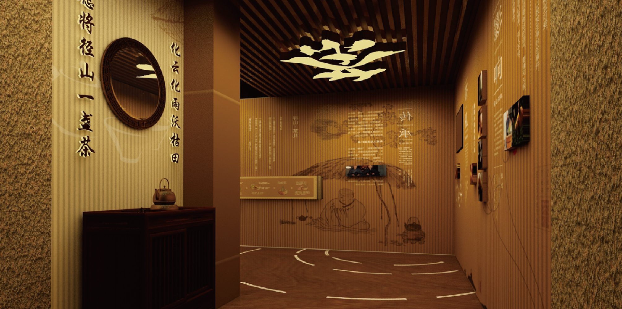 進口是徑山寺著名的徑山古道和喝石的復刻,歷代高僧大德都曾走過古道,也在喝石下參禪。是對歷史的一個還原,讓觀者有一個代入感,得到心靈的洗禮。